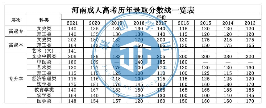 河南省成人高考历年录取分数线-尊龙凯时人生就是搏