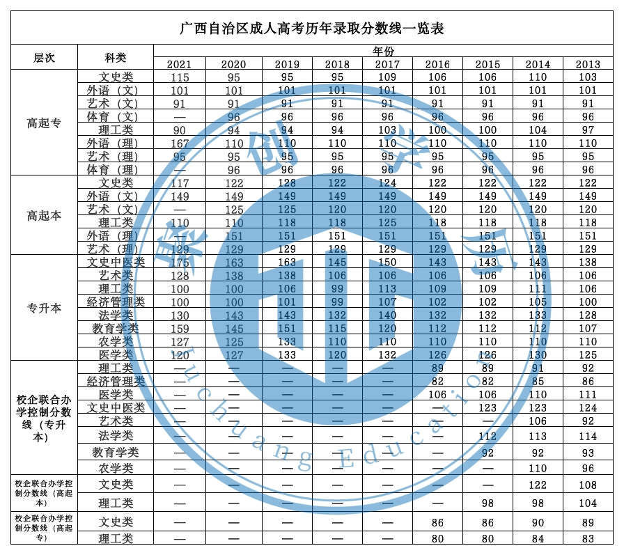 广西成人高考历年录取分数线-尊龙凯时人生就是搏