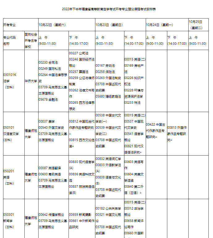 2022年下半年福建省高等教育自学考试开考专业理论课程考试安排表的通知-尊龙凯时人生就是搏